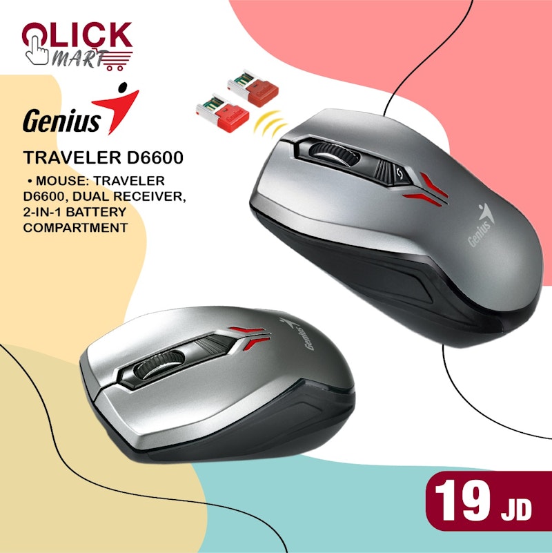 GENIUS MOUSE : TRAVELER D6600, Dual Receiver,2-in-1 , Battery Compartment